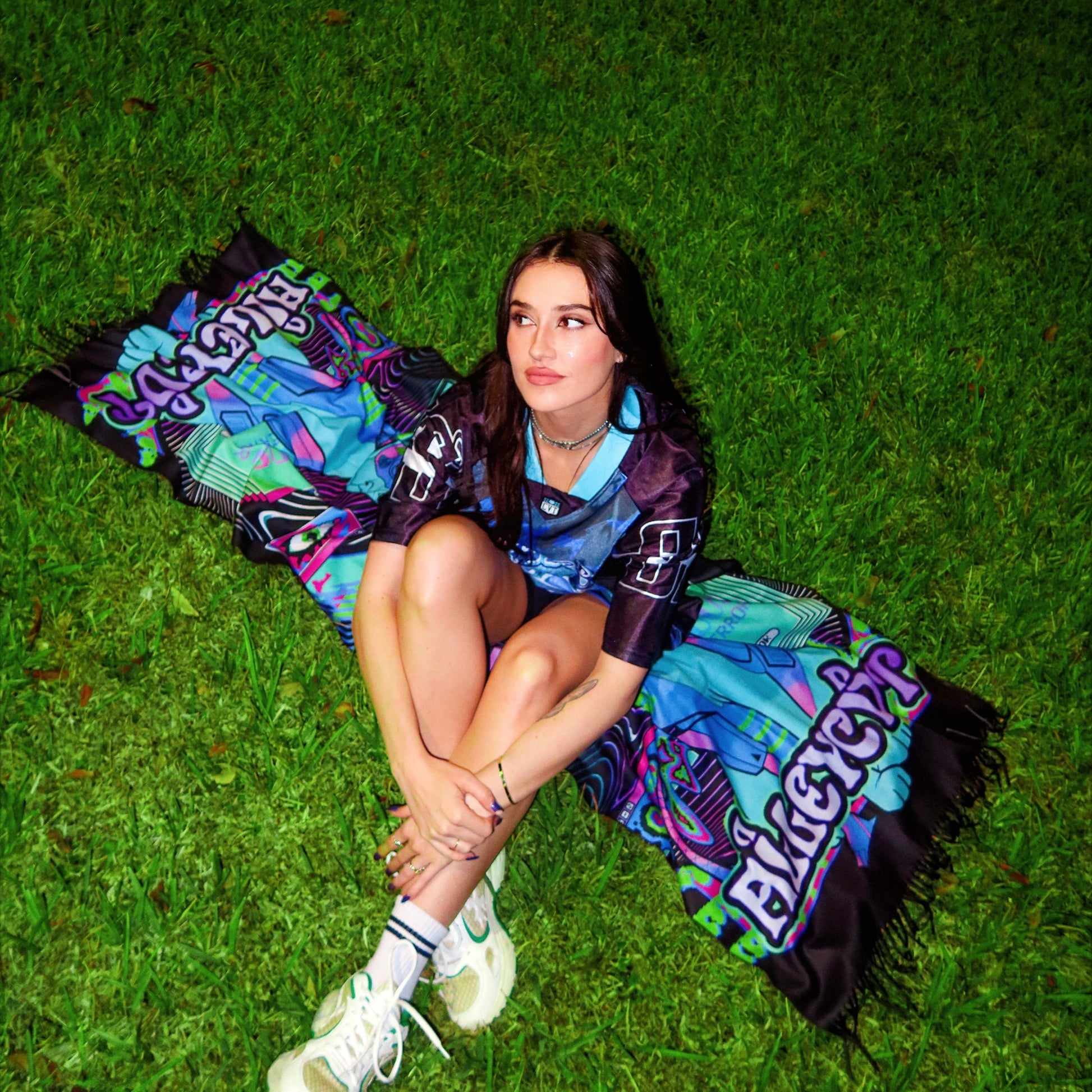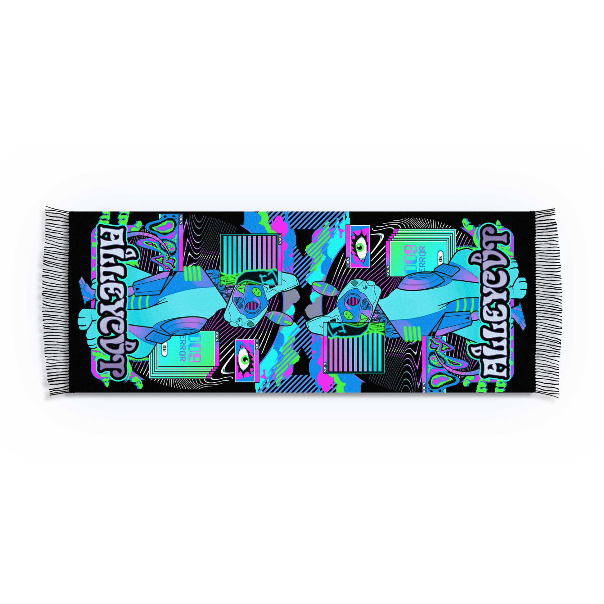 ALLEYCVT BONK THROWBACK pashmina. Super soft dye sub construction and design. Measures approximately 70cm x 180cm.